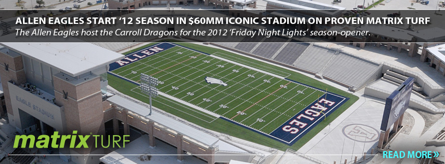 Tonight, the turf, the stadium and two Texas high schools kick off their football season in the recently completed $60 million dollar facility in Allen, TX. Underneath the two teams: a 90,000 square-foot, premium-quality artificial grass system known as Matrix Turf.